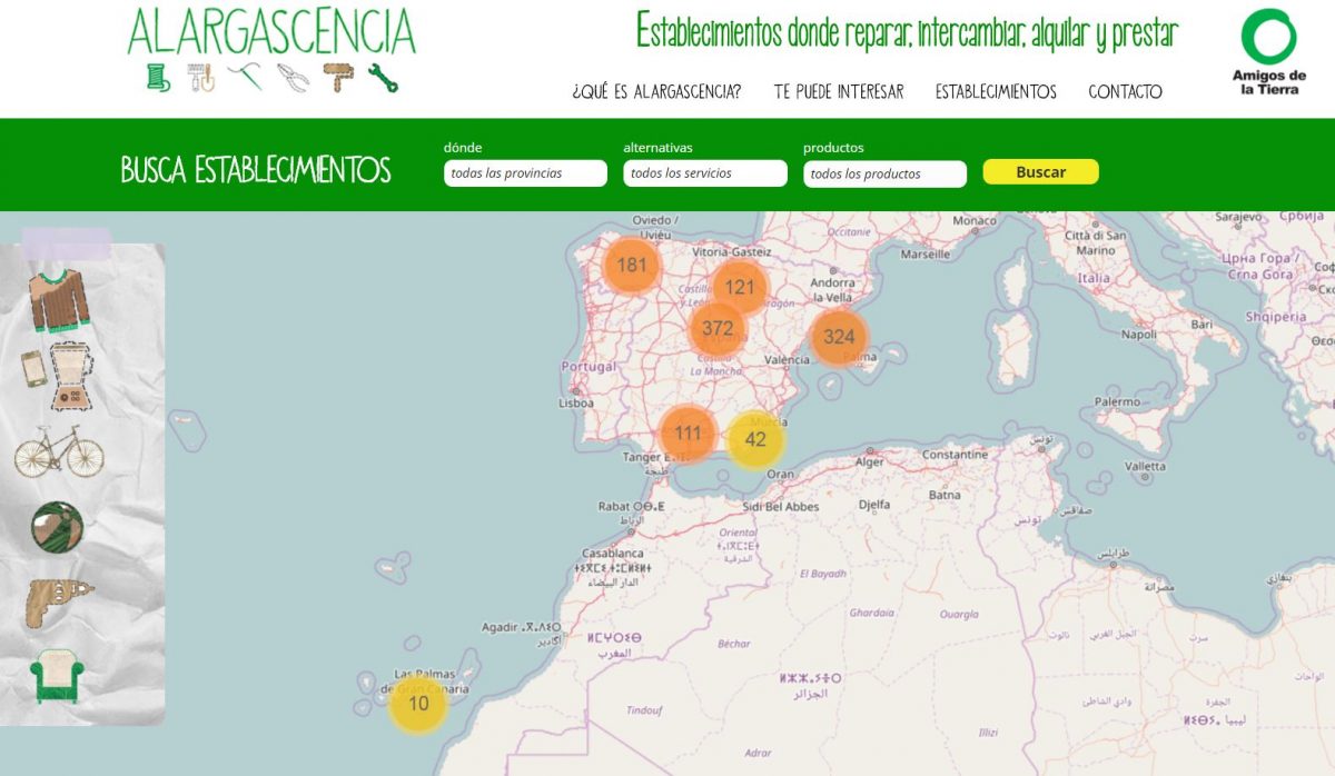 El directorio de Alargascencia incluye a comercios dedicados a alargar la vida útil de todo tipo de productos, así como a impulsar la compra y la venta de segunda mano, la reparación, el trueque y el alquiler, con el doble objetivo de luchar contra la obsolescencia programada y promover el comercio local en todos los sectores: desde la electrónica hasta el ocio, pasando por textil, muebles o herramientas, entre otros.