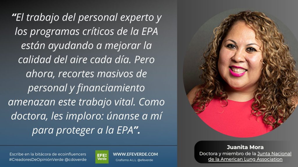 La buena noticia es que he visto menos pacientes enfrentando estos problemas respiratorios en los últimos 10 años. Las normativas implementadas por la Agencia de Protección Ambiental de los Estados Unidos (EPA, por sus siglas en inglés) han reducido las emisiones de autos y camiones, disminuido la contaminación tóxica de las plantas de energía y educado a las personas sobre la calidad del aire que respiran. El trabajo del personal experto y los programas críticos de la EPA están ayudando a mejorar la calidad del aire cada día. Pero ahora, recortes masivos de personal y financiamiento amenazan este trabajo vital. Como doctora, les imploro: únanse a mí para proteger a la EPA.