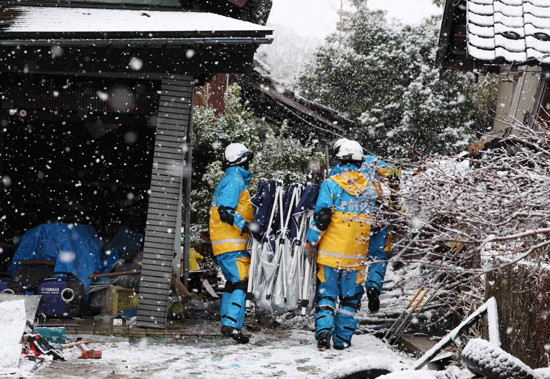 Esto, unido a las nevadas caídas en las últimas horas (Wajima y Suzu acumulaban 9 y 13 centímetros de nieve y registraban temperaturas entre 0 y -1 grados centígrados a primera hora de hoy), preocupa sobremanera al Gobierno, que está contemplando la entrega de comida a pie en muchos puntos de la zona afectada.