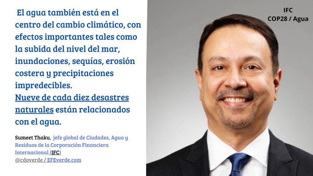 Es mucho lo que está en juego. Los enormes retos de la conservación, gestión e infraestructura del agua no pueden ser afrontados por una sola institución financiera o por los sectores público y privado actuando en solitario. Debemos trabajar juntos. Debemos eliminar las barreras a la participación del sector privado y fomentar asociaciones público-privadas que catalicen más inversiones en adaptación, mitigación y financiación climática, y que permitan compartir experiencias y conocimientos.