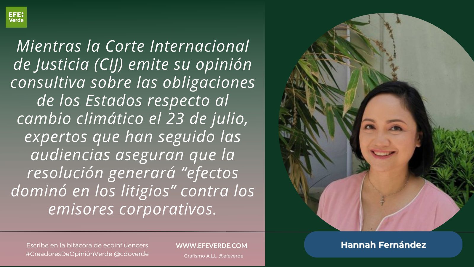 “Aclararía que las obligaciones ambientales están interconectadas con todas las acciones estatales, incluidas las políticas económicas y de desarrollo. Esta clarificación fortalecería la protección ambiental y de derechos humanos a nivel global”.