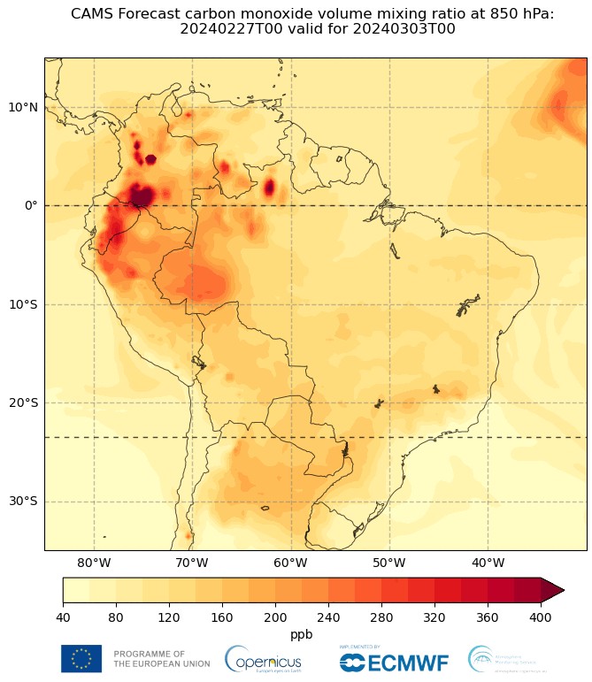 Berlín.- El Servicio de Monitoreo de la Atmósfera de Copernicus (CAMS, en sus siglas en inglés) ha rastreado las emisiones de los incendios forestales en Sudamérica y ha concluido que estos han provocado las mayores emisiones de carbono en febrero desde 2003 en Brasil, Venezuela y Bolivia.
