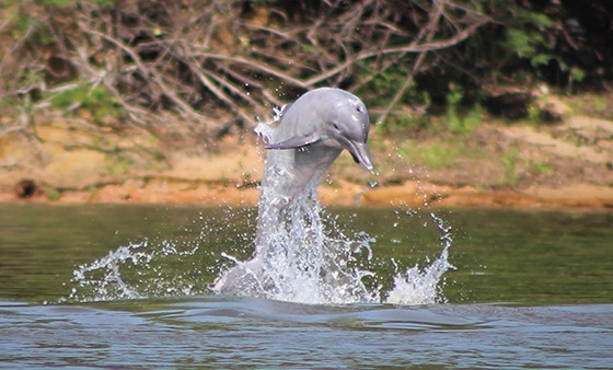 Por otro lado, los delfines de río se enfrentan a presiones como el tráfico marítimo, que presenta riesgos para la especie sobre todo a causa del ruido que generan los buques, la colisión de los animales con embarcaciones y la posibilidad de atraparlos de forma accidental en redes de pesca.