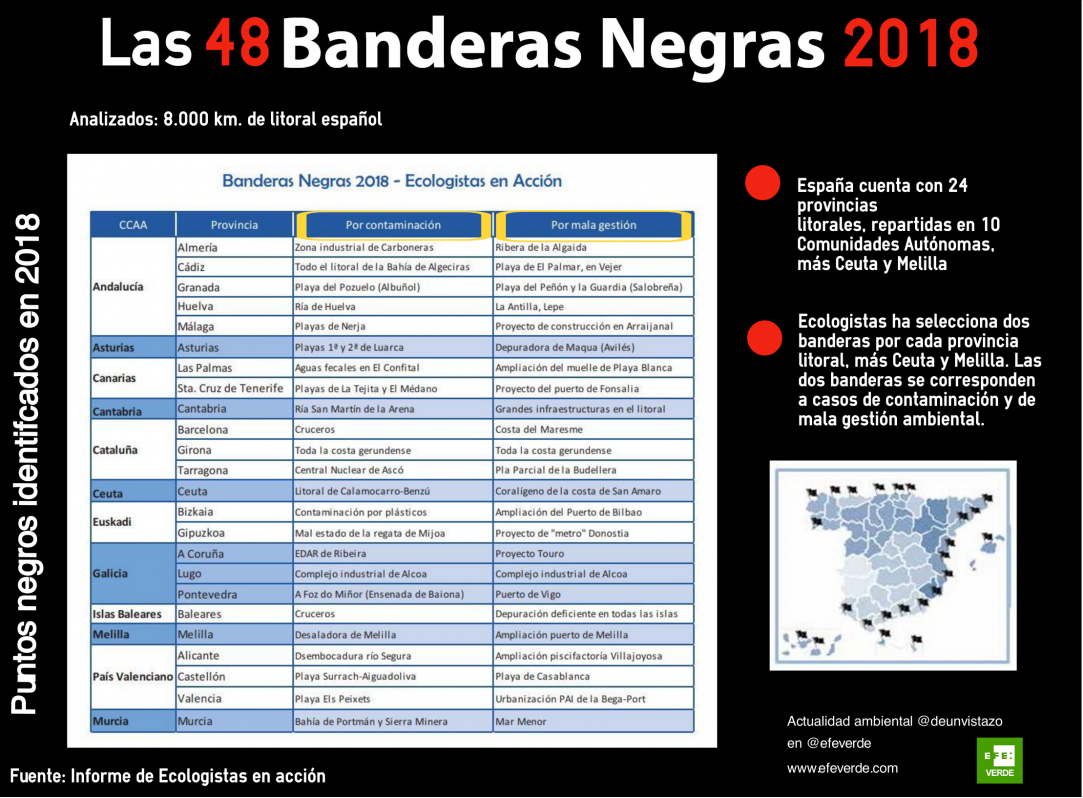 Accede en EFEverde al informe completo de Ecologistas en Acción: «Banderas negras 2018»