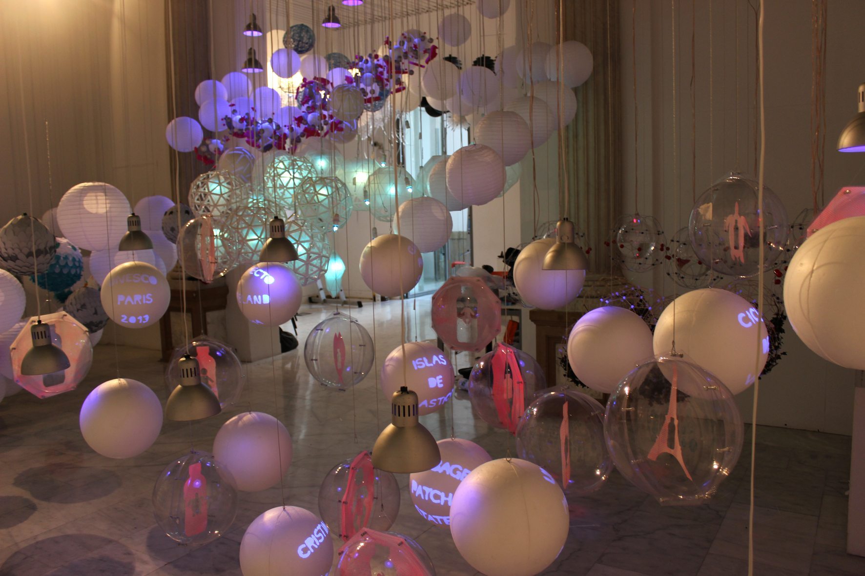 El segundo escenario, en el que han colaborado alumnos del IED, está en una sala interior en la que se han colocado decenas de esferas blancas y azules para representar una ola de mar.