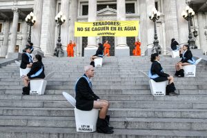 Una de estas organizaciones es Greenpeace, que este jueves, a primera hora de la mañana, hizo una protesta en el Congreso que terminó con una docena de ambientalistas detenidos por la policía y un camarógrafo del canal A24 lesionado y también detenido por la fuerza de seguridad.