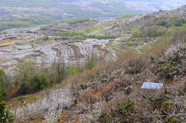 La lluvia ha recibido «a lo grande» a los primeros turistas que han llegado a la comarca atraídos por la posibilidad de observar en primera persona el espectacular manto blanco que se forma en los bancales del Jerte.