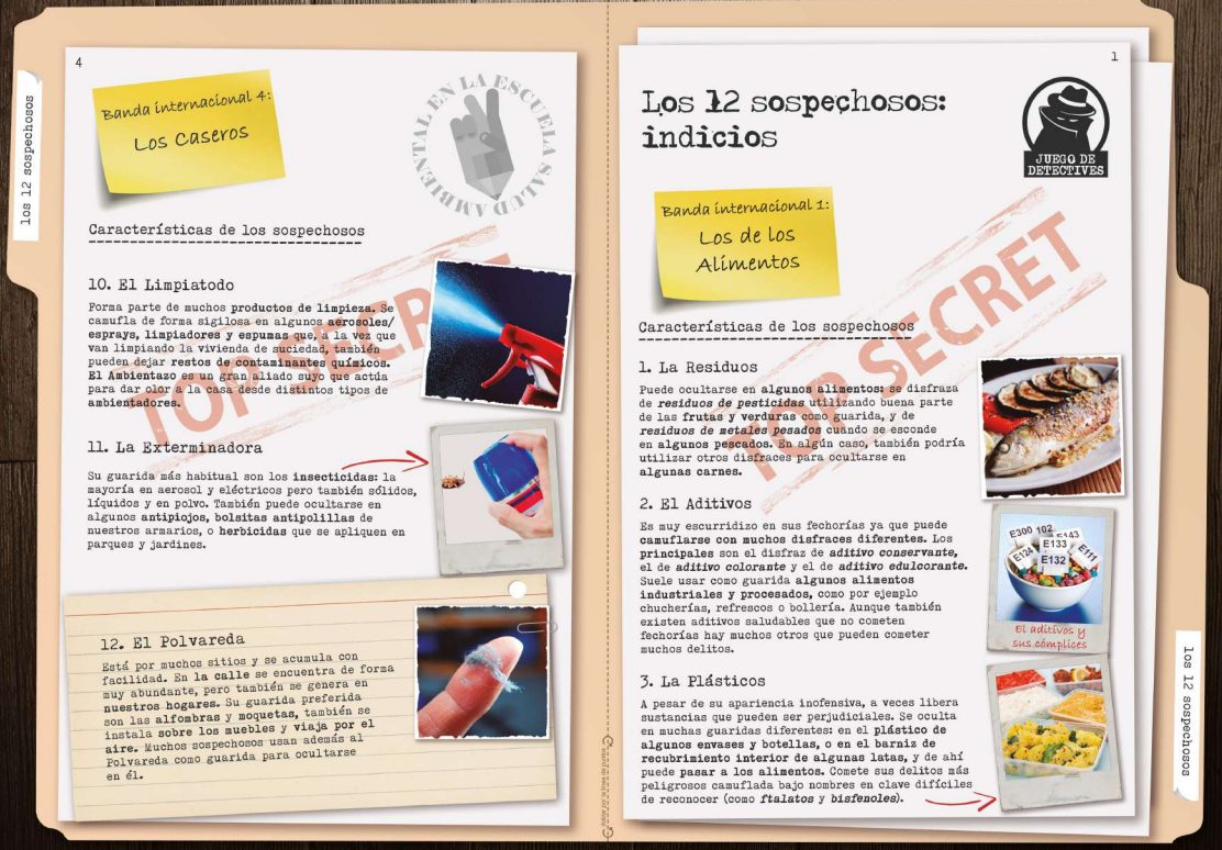 En 3º, 4º y 5º de Primaria se imparte el taller con el que nació el proyecto, bautizado como «el juego de detectives ambientales», en el que los niños aprenden a identificar a doce sospechosos ambientales que pueden afectar a nuestra salud y pertenecientes a cuatro «bandas».