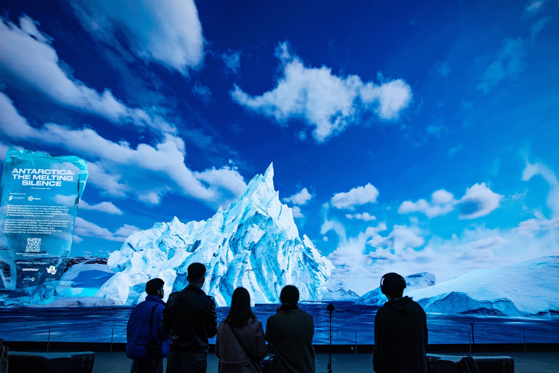 Se trata de una experiencia de cine inmersivo que acerca los paisajes del continente blanco para hacer un llamado a la protección del 30 % del océano Antártico para 2030, según los organizadores.