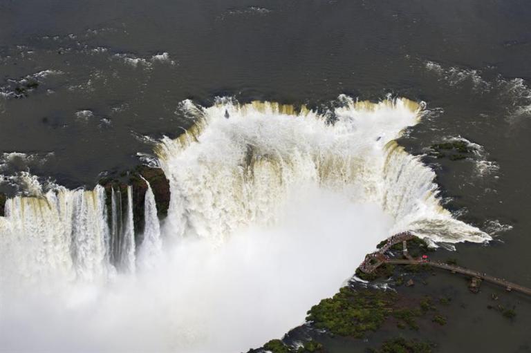 EFEVerde.- Las cataratas de Iguazú, situadas en la frontera entre Brasil y Argentina, registraron este viernes el mayor volumen de agua de los últimos cinco años, según informó la Compañía Paranaense de Energía (Copel), que monitora el flujo de agua en la región.