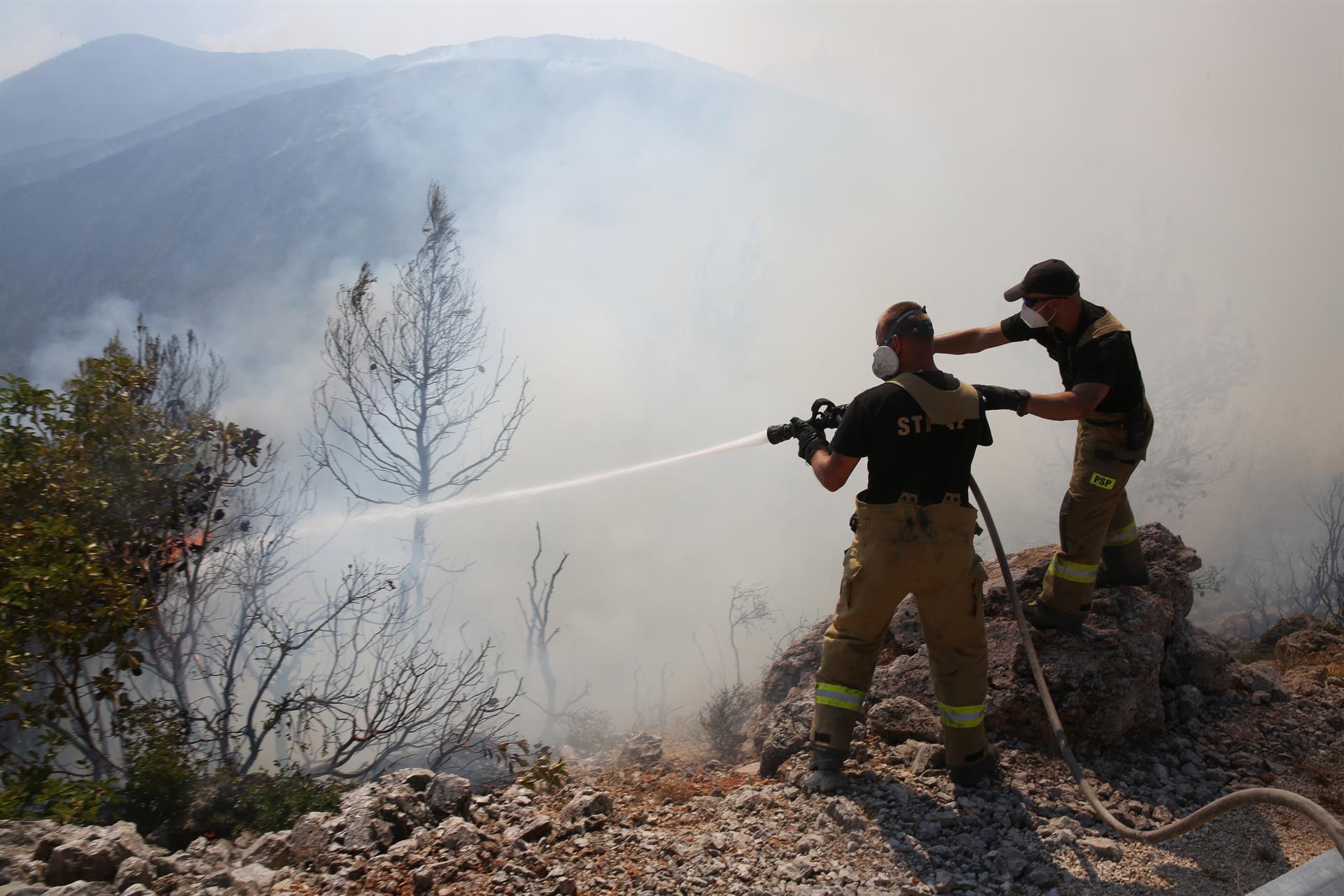 Continúa por tercer día la lucha contra un incendio forestal al noroeste de Atenas