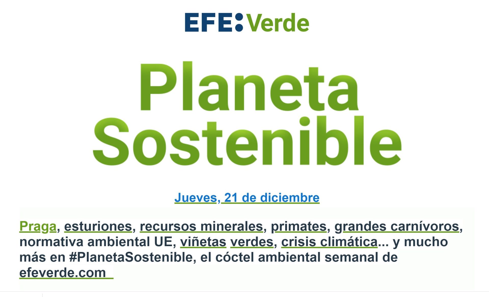 Esturiones, recursos minerales, primates, grandes carnívoros, normativa ambiental UE, viñetas verdes, crisis climática… y mucho más en #PlanetaSostenible de este 21 de diciembre, el cóctel ambiental semanal de efeverde.com