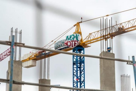 Activistas encaramados en grúas