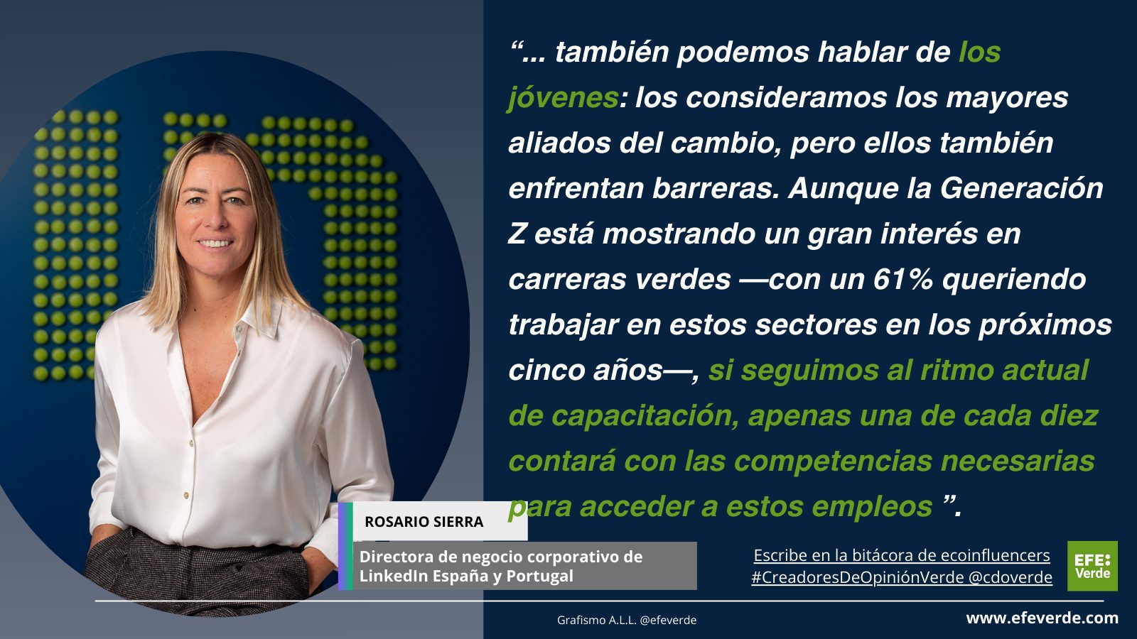 n este punto, también podemos hablar de los jóvenes: los consideramos los mayores aliados del cambio, pero ellos también enfrentan barreras. Aunque la Generación Z está mostrando un gran interés en carreras verdes —con un 61% queriendo trabajar en estos sectores en los próximos cinco años—, si seguimos al ritmo actual de capacitación, apenas una de cada diez contará con las competencias necesarias para acceder a estos empleos.