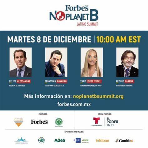 ‘No Planet B Latino Summit’ cuenta con el apoyo de Forbes Latam, Telemundo; Efeverde, departamento de información medioambiental de la Agencia Efe; de ‘infobae’, diario digital argentino de economía y actualidad, y de ‘Cambio 16’, revista de información general española, entre otros. EFEverde