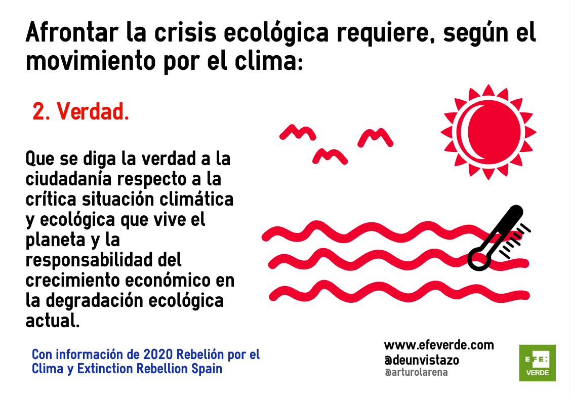 2. Verdad. Que se diga la verdad a la ciudadanía respecto a la crítica situación climática y ecológica que vive el planeta y la responsabilidad del crecimiento económico en la degradación ecológica actual.