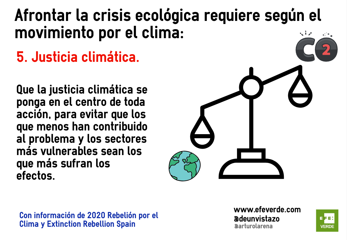 5. Justicia climática. Que la justicia climática se ponga en el centro de toda acción, para evitar que los que menos han contribuido al problema y los sectores más vulnerables sean los que más sufran los efectos.
