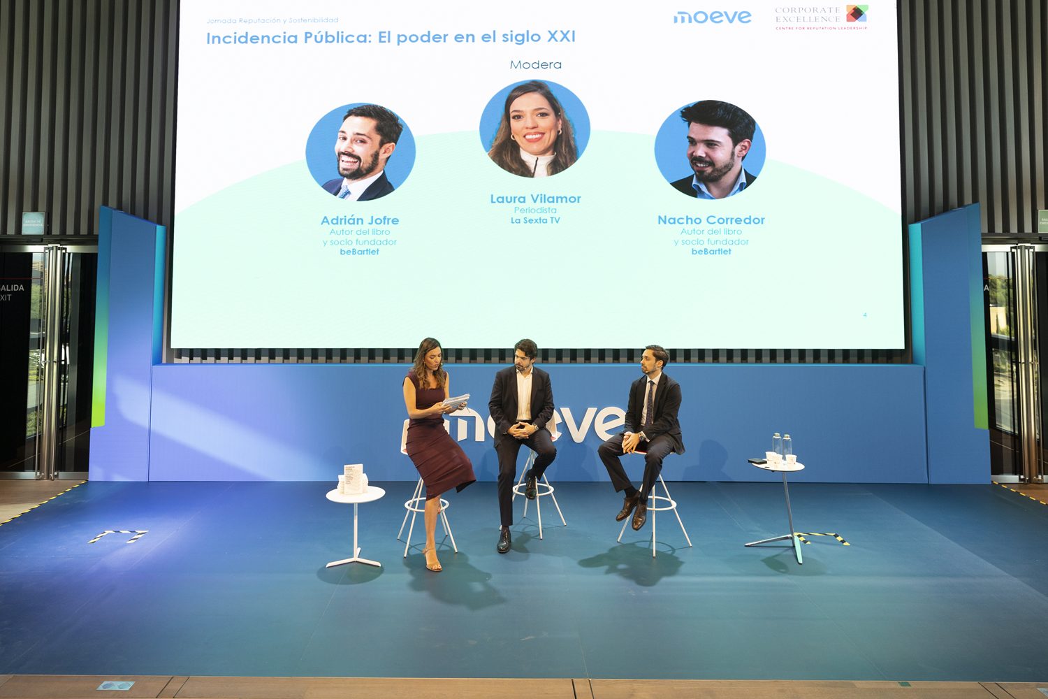 La primera mesa redonda, moderada por la periodista Laura Vilamor, contó con la participación de Adrián Jofre Bosch y Nacho Corredor, socios fundadores de beBartlet y autores del libro Incidencia Pública: El poder en el siglo XXI.