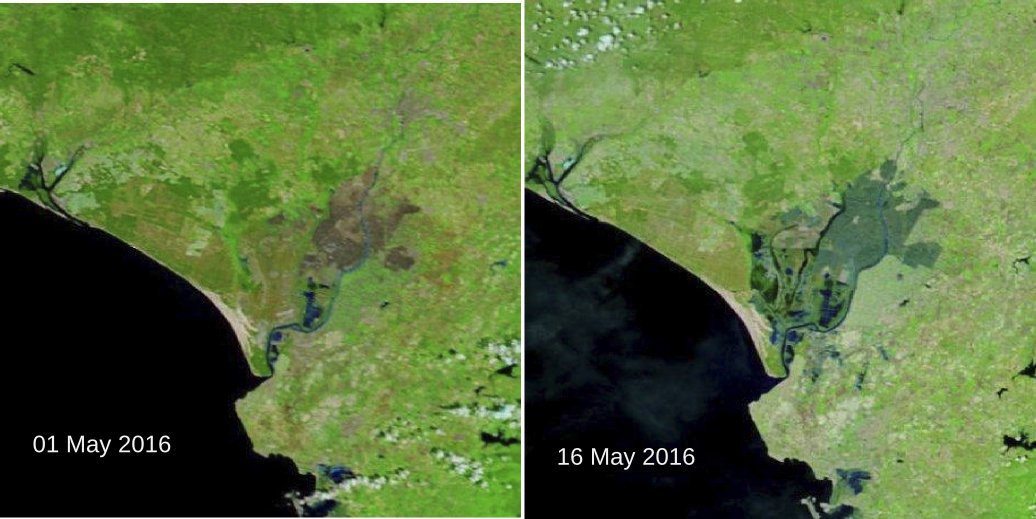 Las imágenes registradas ayer, tras diez días consecutivos de cielos nubosos, por el sistema de imágenes por satélite MODIS, utilizado por la Estación Biológica de Doñana (EBD) para el seguimiento de este espacio protegido, reflejan una inundación de buena parte de la zona de la marisma tras estos días de intensas lluvias.