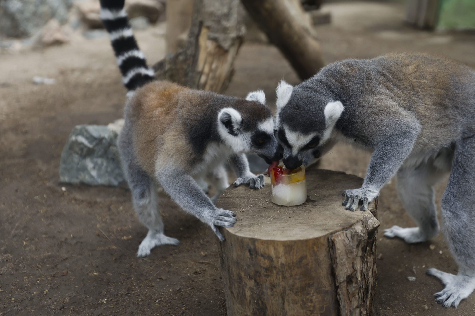 Algunas especies como los chimpancés y jirafas también reciben fruta congelada o helados de zumo de fruta, y las mangostas disfrutan de granizados de gusanos.