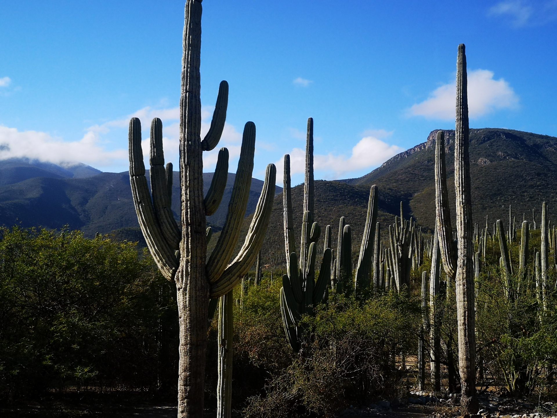 Me estoy refiriendo al valle de Zapotitlán y a la reserva de biosfera de Tehuacán-Cuicatlán, que en sus 500 Ha, albergan hasta unas 3.000 especies diferentes de plantas, con un 30 % de endemismos (algo increíble) de las que hay que destacar sin duda las cactáceas, con 45 especies del total de 70 que hay en todo México y claro sin olvidar los agaves, de los que se produce el mezcal, por destilación del maguey bebida de dioses y con aguante por sus 50º de alcohol y con denominación de origen de Puebla, en este caso.