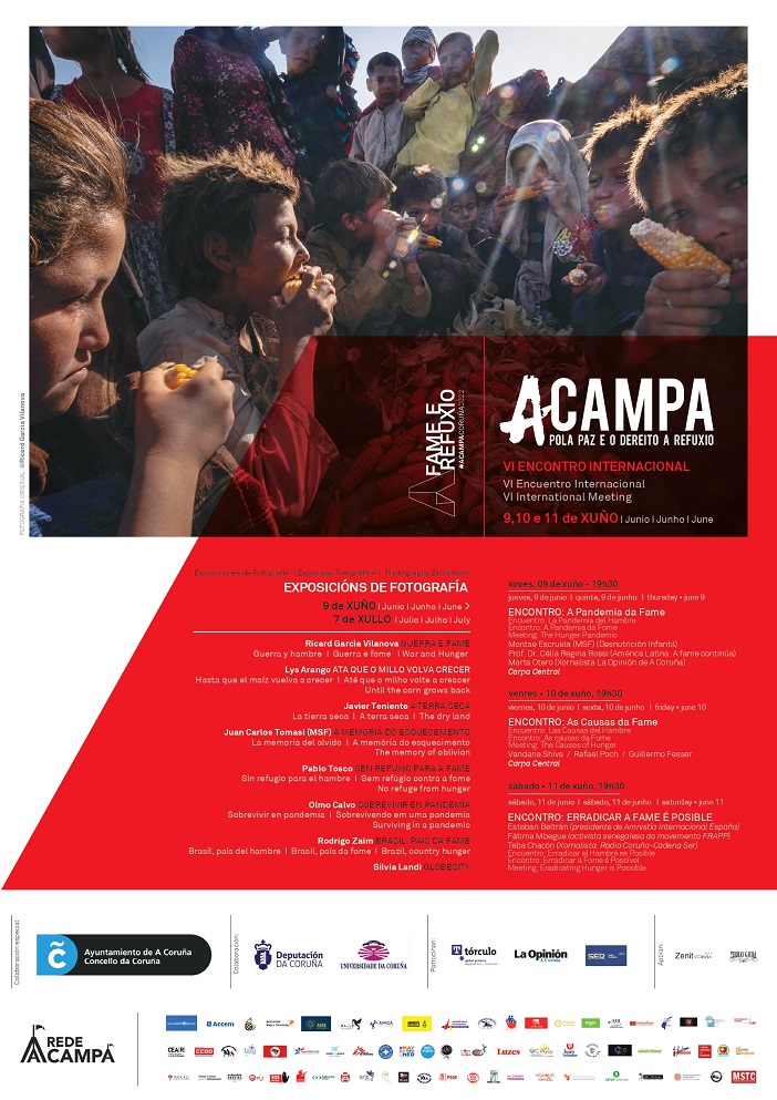 Fotógrafos humanitarios, periodistas, activistas y expertos internacionales invitados por la Red Acampa analizarán en A Coruña la realidad del hambre y las responsabilidades colectivas y particulares que Estados, gobiernos, empresas y ciudadanía tienen respecto a esta lacra que mata a alrededor de 24.000 personas cada día.