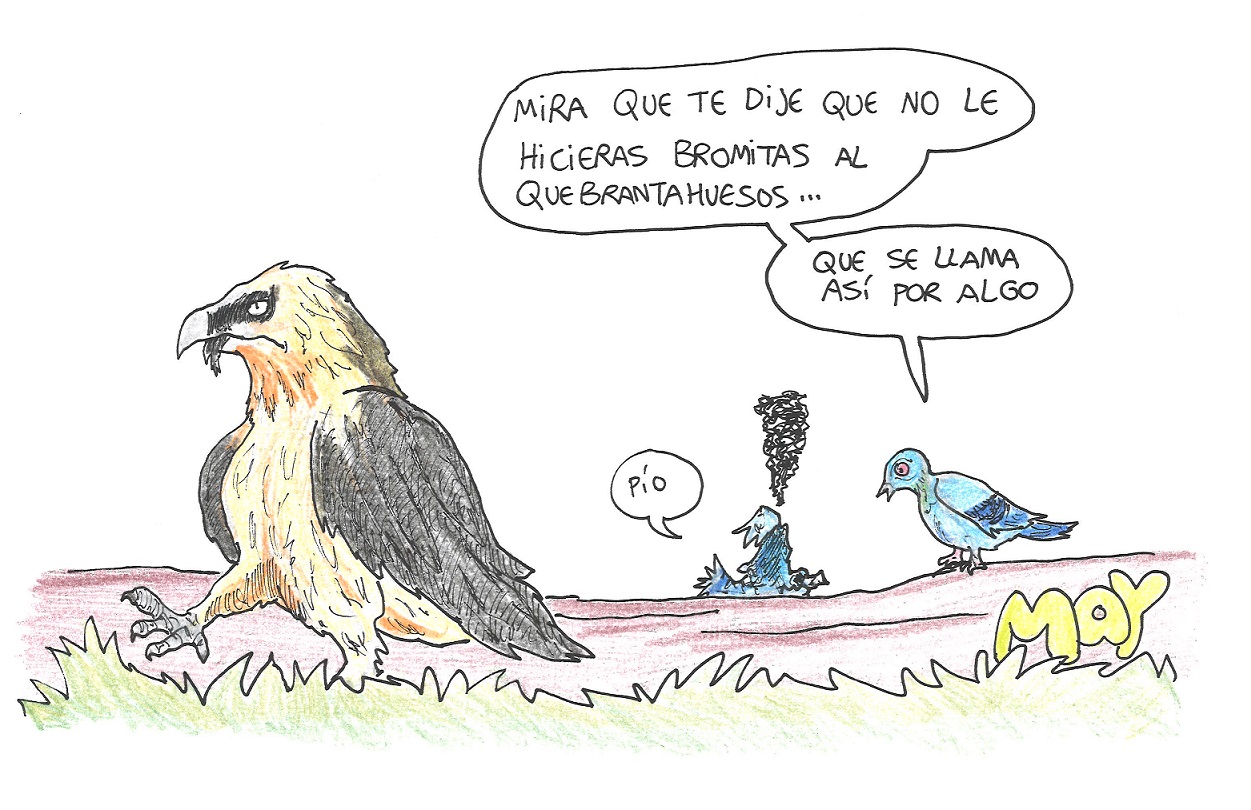 El quebrantahuesos es un buitre muy particular, así llamado por la técnica que ha desarrollado a lo largo de su existencia: transporta huesos o caparazones hasta lo alto y los suelta sobre piedra y roca para que se rompan. De esta manera puede alimentarse con ellos y con su contenido. Esta especie está actualmente muy amenazada y en España se le puede observar en los Pirineos y la Cordillera Cantábrica.