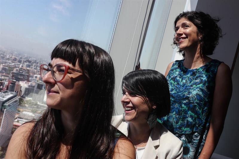 De izquierda a derecha: la investigadora y profesora adjunta del Barruck College, Alicia Pérez-Porro; la directora del proyecto de energías renovables «Costa Rica Limpia», Mónica Araya, y la investigadora asociada del Instituto de Ciencias Marinas de Barcelona, Anna Cabré, posan este lunes para una fotografía durante una entrevista con Efe, en Santiago (Chile). EFE/Alberto Valdés