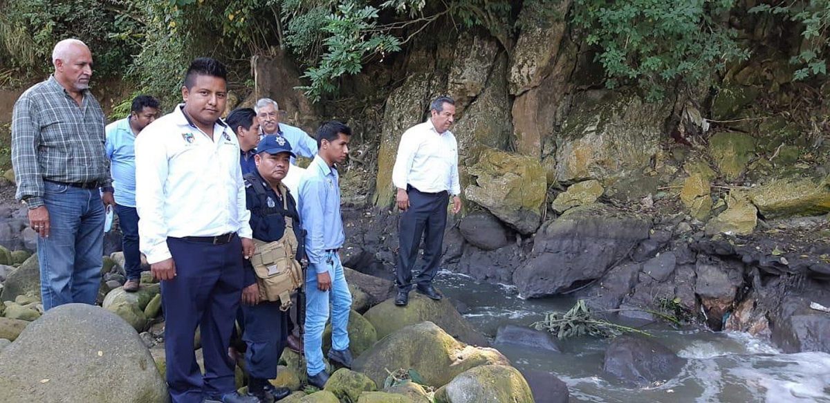 El alcalde de Amatlán de Los Reyes, Eduardo Rojas Camacho, acompañado de personal de Protección Civil, anunció que buscarán una solución al problema para evitar que el río se seque.