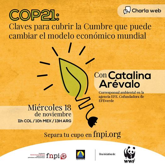 Este seminario web es el primero de un ciclo de 3 encuentros en línea convocados por WWF y FNPI, con el objetivo de preparar a los periodistas iberoamericanos con miras a la cobertura de los temas de cambio climático en el marco de la COP21.