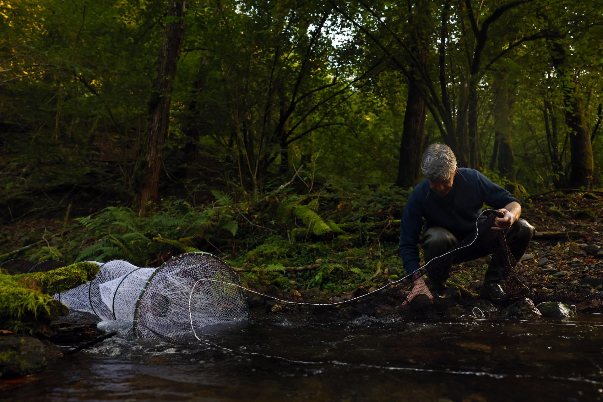 En la imagen, Jorge González-Esteban instalando una nasa para el rastreo de desmanes. EFE/JJ Guillén