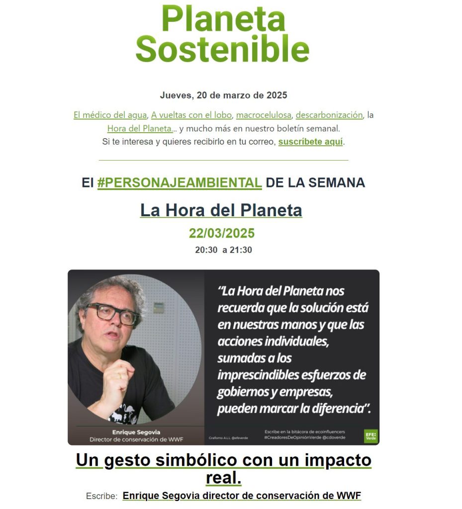 La Hora del Planeta es el #PersonajeAmbiental de la semana en Planeta Sostenible