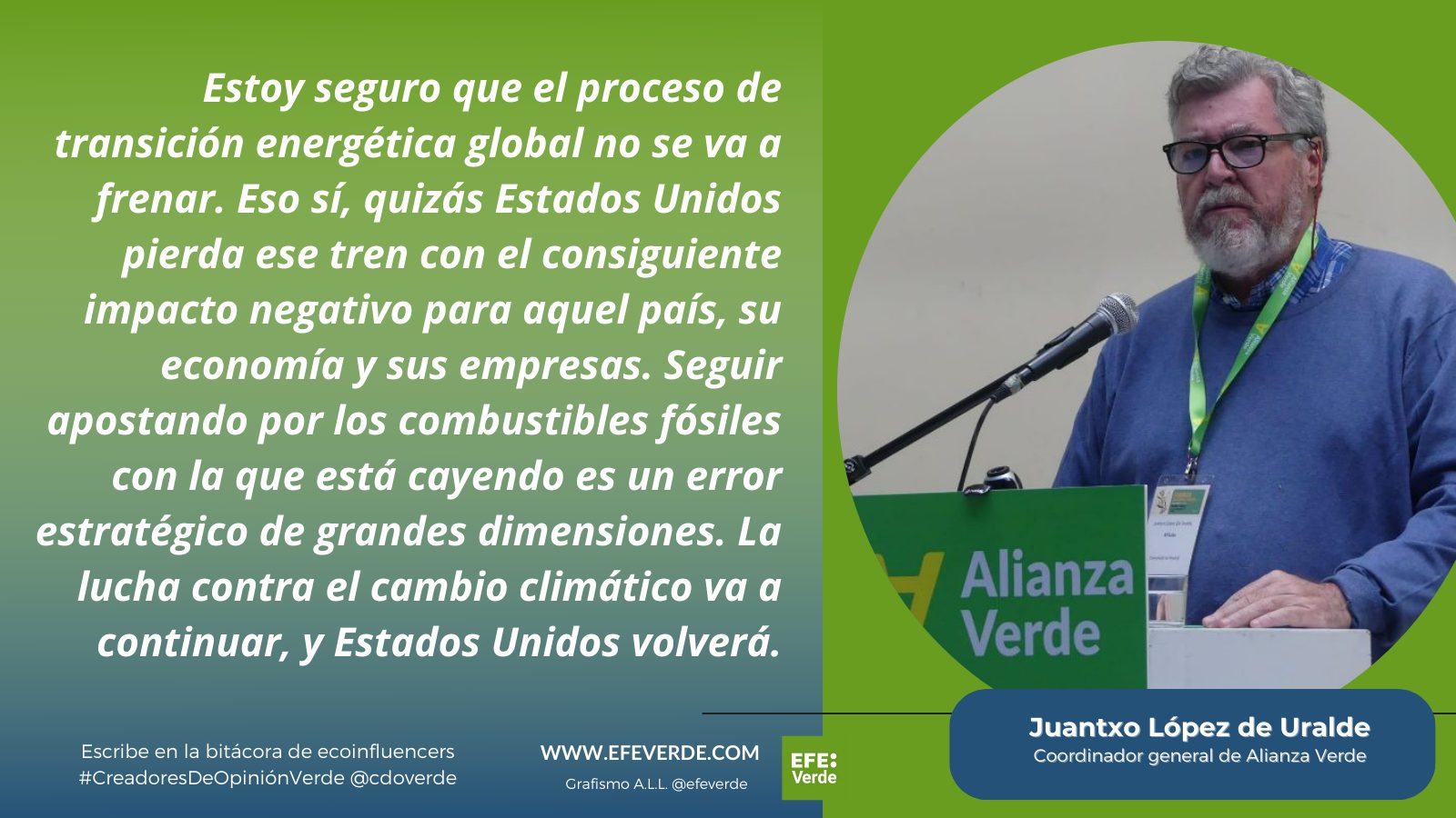 Parece mentira que tras un año, 2024, que ha sido el más cálido desde que hay registros estemos nuevamente enfrentando el negacionismo del presidente del país más poderoso del mundo. Pero estoy seguro que el proceso de transición energética global no se va a frenar. Eso sí, quizás Estados Unidos pierda ese tren con el consiguiente impacto negativo para aquel país, su economía y sus empresas. Seguir apostando por los combustibles fósiles con la que está cayendo es un error estratégico de grandes dimensiones. La lucha contra el cambio climático va a continuar, y Estados Unidos volverá a ella.