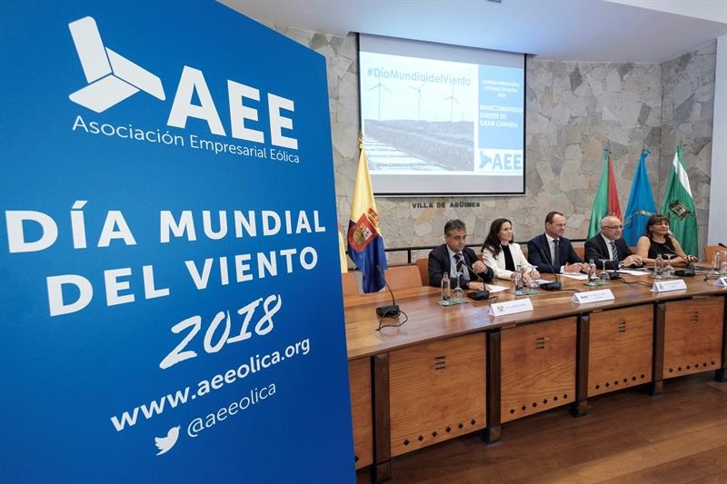 Aprovechando la celebración de este viernes, la presidenta de la AEE, Rocío Sicre del Rosal, ha entregado el Premio Eolo a los municipios canarios de Agüimes y de la Mancomunidad del Sureste de Gran Canaria por su ejemplo de integración de los parques de aerogeneradores en zonas rurales. EFEverde.